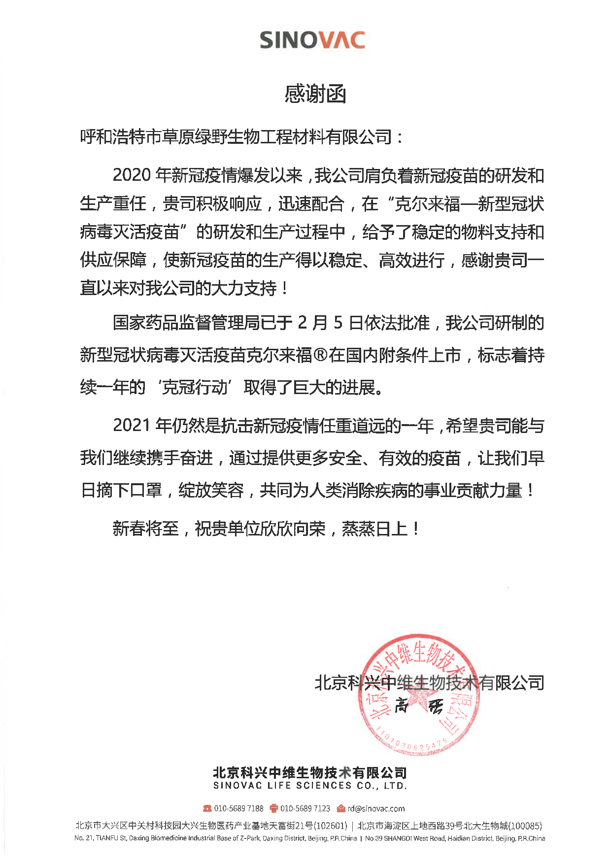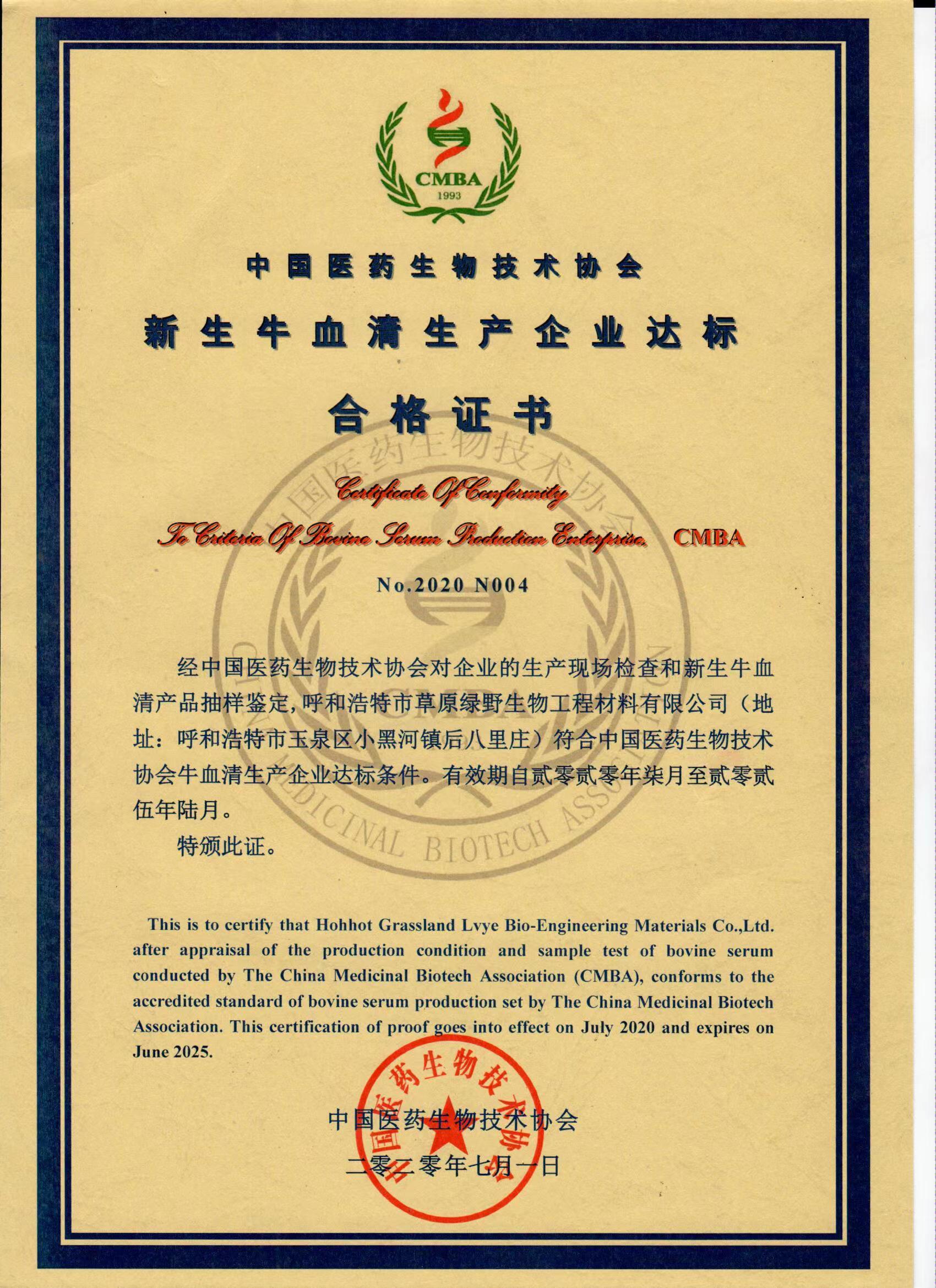 呼和浩特市草原綠野生物工程材料有限公司,坐落在中國乳都——呼和浩特,成立于1984 年5 月,是中國大型動物血清生產(chǎn)廠家之一。1995 年建造了國內(nèi)首個生產(chǎn)血清的凈化車間,1996 年生產(chǎn)出了國內(nèi)首批細(xì)菌內(nèi)毒素小于10EU / ml 的新生牛血清,井收錄于《中國藥典》。于2001 年研發(fā)并生產(chǎn)出BVDV 、BDV 四陰性豬瘟專供新生牛血清。于2008 年6 月、2013 年09 月、2019 年12 月三次順利通過中國醫(yī)藥生物技術(shù)協(xié)會《牛血清生產(chǎn)達(dá)標(biāo)企業(yè)》認(rèn)證。