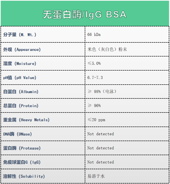 不含有蛋白酶以及RNase酶活性,同時(shí)不含IgG,純度等級(jí)更高,作為封閉液或稀釋液應(yīng)用于EIA和ELISA等實(shí)驗(yàn)中。